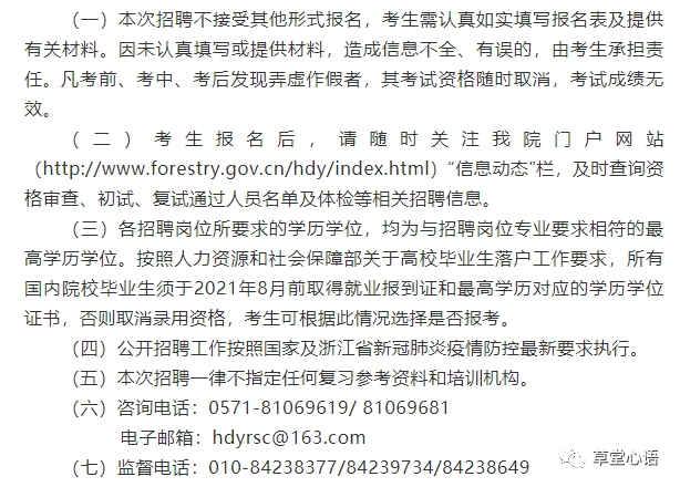 2. 报名方式及要求:考生采取网上报名方式,每名考生只能报考一个岗位。考生在规定时间内如实客观填写《国家林草局华东院2021年高校毕业生招聘报名信息表》(附件2),除个人基本情况外,还应准确填写家庭成员信息(包括父母、配偶、子女姓名、工作单位及职务等),如考生有夫妻、直系血亲、三代以内旁系血亲、近姻亲等亲属关系的人员在我单位任职或担任国家林草局机关处级以上领导干部和局直属单位担任领导人员的,必须如实准确填写。将报名信息表、本人身份证、就业推荐表或毕业证、成绩单(需加盖毕业学校公章)、个人荣誉证书、发表论文等相关材料扫描件及1寸正面免冠彩色电子照片发送至电子邮箱([email protected]),邮件标题按“岗位序号-毕业院校-姓名-专业”的格式命名。