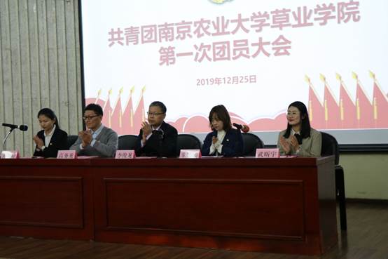 随后会议进入第二阶段。团委书记武昕宇做了《不忘初心跟党走,青春建功新时代,坚持立德树人,服务国家战略,培养志存高远,担当有为的草业青年》的工作报告。报告从青年的思想引领、组织建设、生态治理等方面回顾了过去六年的工作。另一方面,报告指出了目前仍然存在的问题,并提出了践行新思想、奋进新时代、服务新青年、激发新活力四点明确了今后的工作方向。
