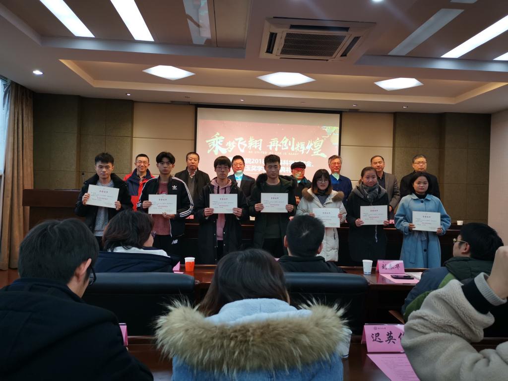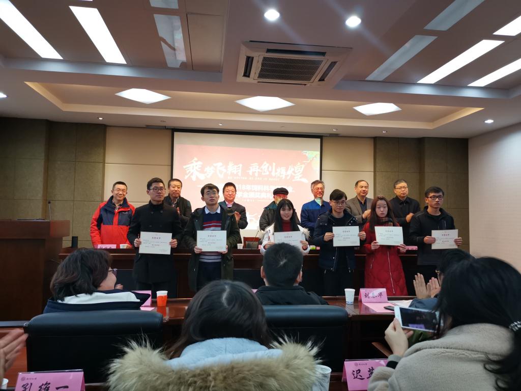 随后,尤佩华总经理和李俊龙书记分别宣读了“关于表彰2018年饲料科学奖学金获奖者的决定”和“关于表彰2018年璞玉奖学金获奖者的决定”。与会嘉宾共同为19名获奖同学颁奖,并合影留念。获奖代表硕士生王茜和本科生吴佳璇分别作为获奖者代表发言。