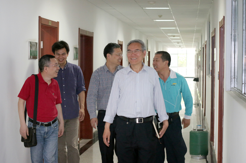 南院士饶有兴致地参观了av在线 在理科南楼的实验室。他听取了各实验室负责人的简要介绍后,对各实验室的建设、使用情况表示欣慰。在实验室,他亲切地向正在工作的研究生询问研究内容和研究进展,并勉励他们刻苦勤奋学习,争取更大进步。