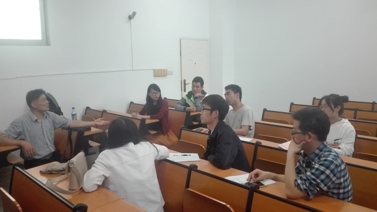 接下来是教学研讨环节。邵老师与与会教师进行了教学方法和技巧的交流,解答了老师们在初涉教学工作上遇到的一些困惑。最后邵老师表示,作为青年教师要深入地进行科学研究,把科研工作与教学结合,做到相辅相成,不断提高教学水平。